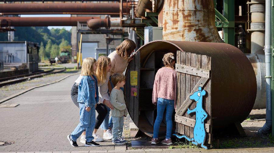 Unser Museumsmaskottchen "Ratte" kennt sich auf dem Gelände der Henrichshütte richtig gut aus. Ein Rätsel möchte sie gemeinsam mit den Kindern unbedingt lösen: wie wird aus ein paar Steinen Eisen hergestellt? Und los geht's: ausprobieren, entdecken, Spaß haben. Zum Glück hat Ratte eine Kiste gepackt. Werkzeuge, Schutzkleidung und andere Materialien aus der Hüttenzeit wecken Neugier. Gemeinsam erschließen die Kinder den bis dahin fremden Raum Industrie als Teil ihrer Umwelt.